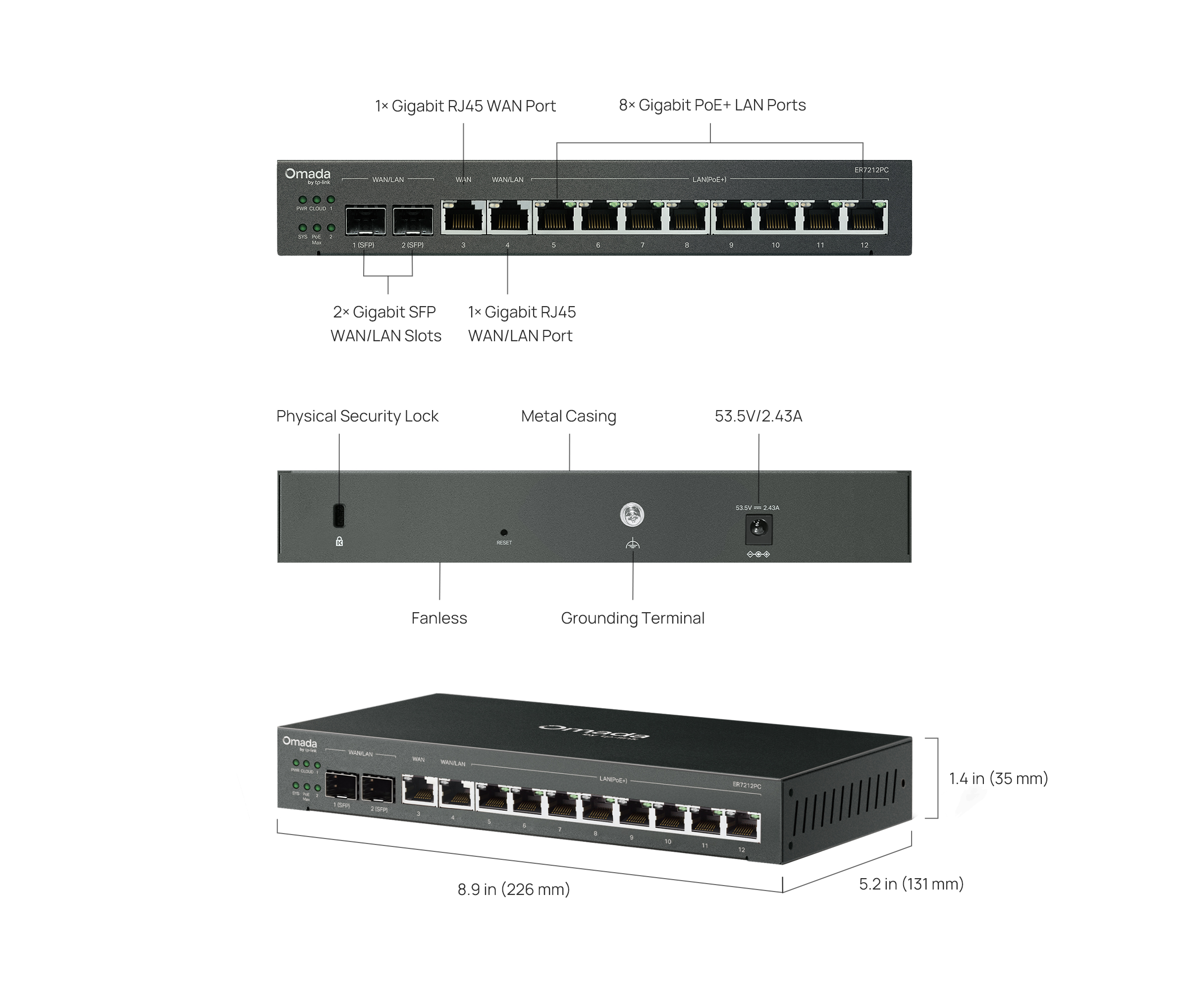| Interface | • 2 Gigabit SFP WAN/LAN ports**• 1 Gigabit WAN port• 1 Gigabit LAN/WAN port• 8 Gigabit LAN ports |