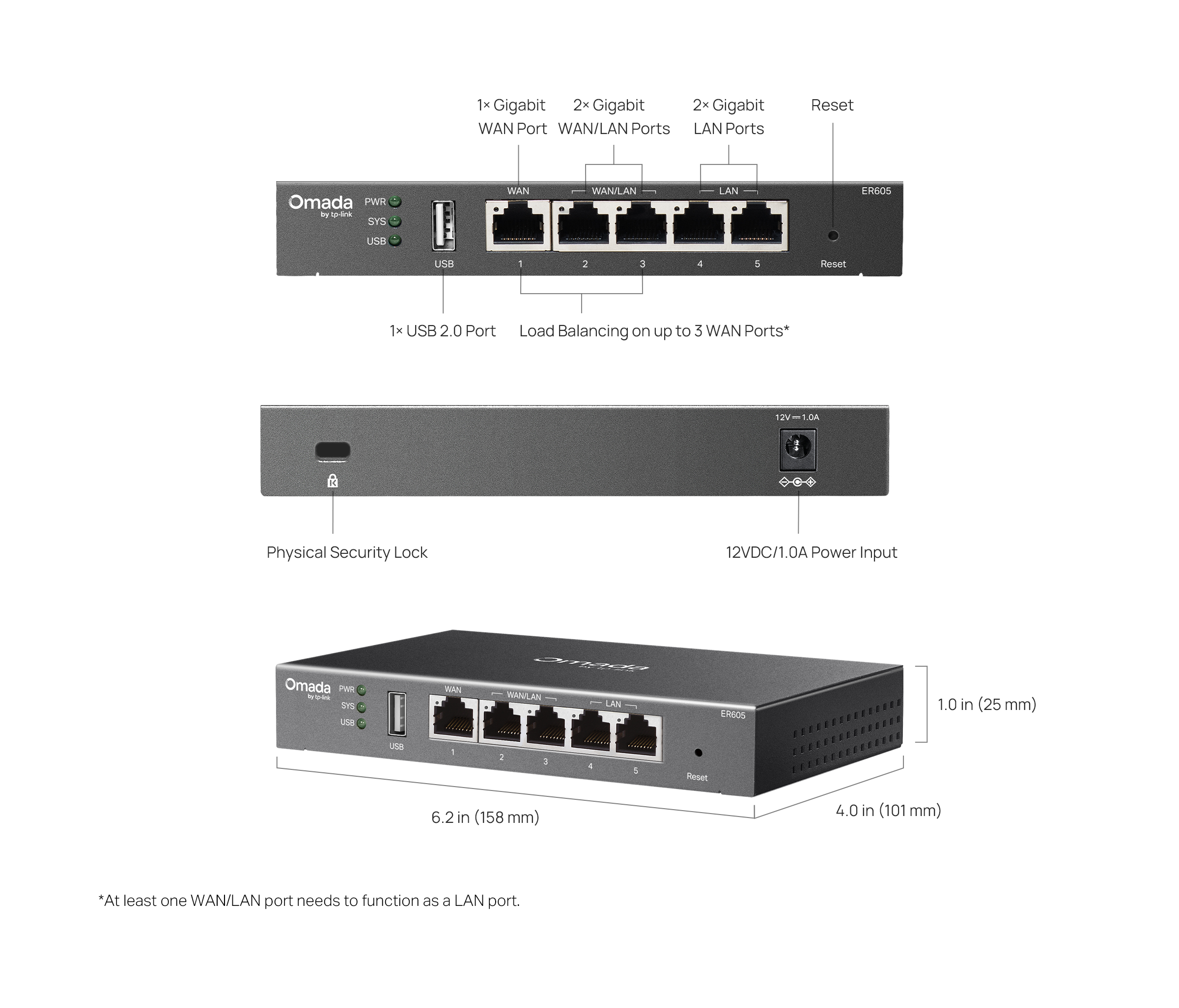 | Package Content | • ER605• Power Adapter• RJ-45 Ethernet Cable• Quick Installation Guide |