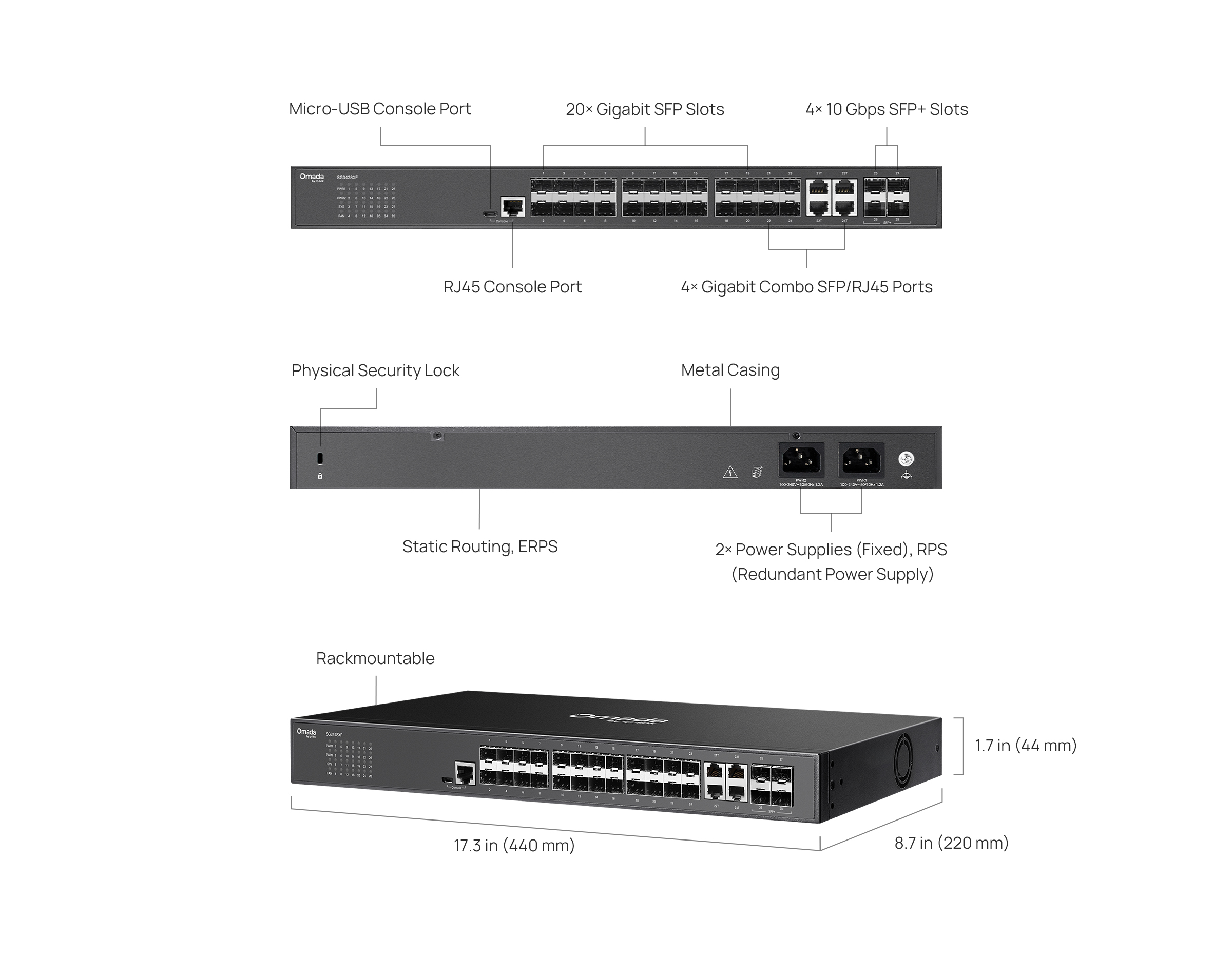 20× Gigabit SFP Slots, 4× SFP/RJ45 Combo Ports