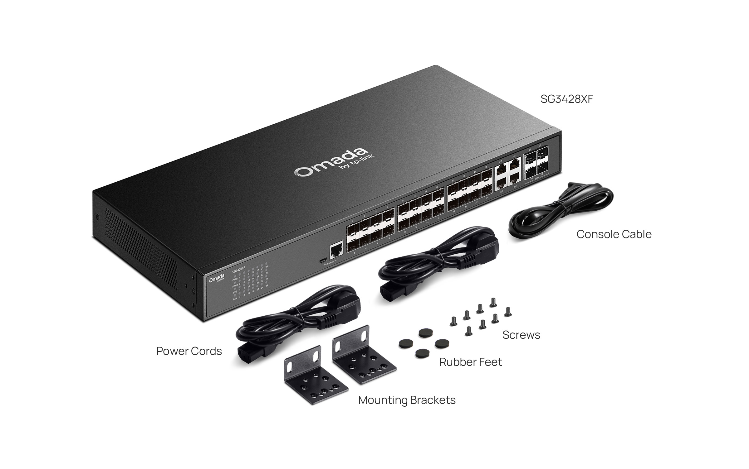 | Package Content | • SG3428XF Switch• Power Cord• Console Cable• Rackmount Kit• Rubber Feet• Quick Installation Guide |