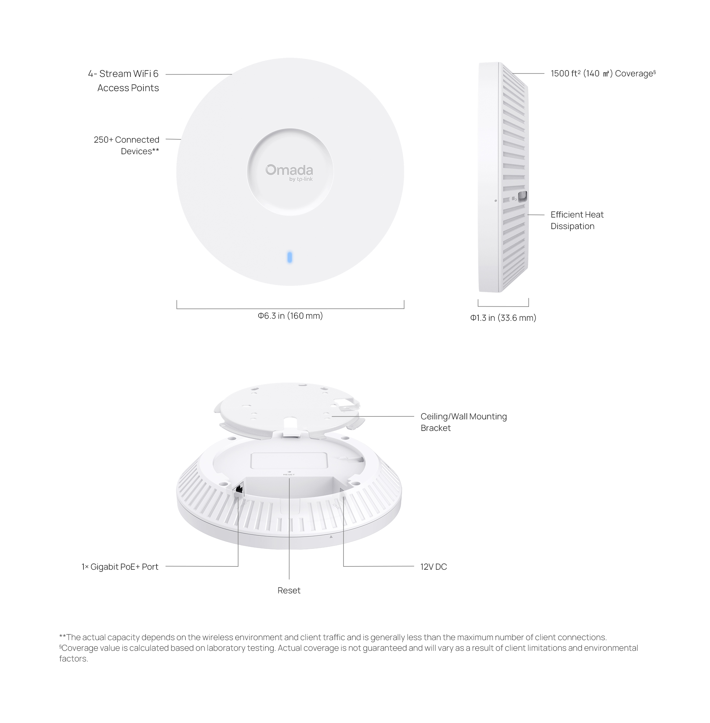- More Connections and Wider Coverage: Supports 250+ concurrent clients** and covers up to 1500 ft² (140 ㎡)* for reliable and extensive wireless connectivity.
