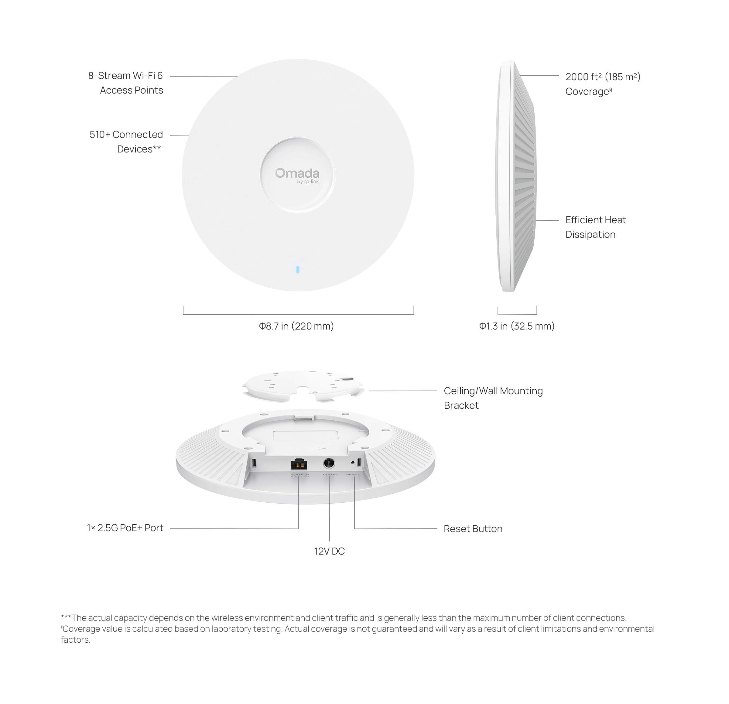 • Flexible Deployment and Easy Setup: Supports both 802.3at PoE and DC Power supply for flexible installation. Omada SDN for one-click setup.