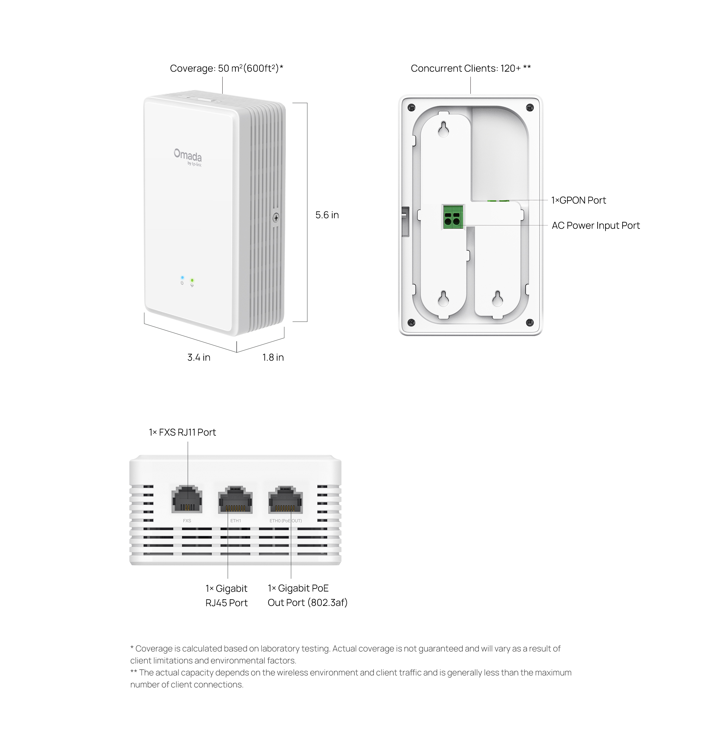Omada AX1800 Wi-Fi 6 Wall Plate GPON Access Point