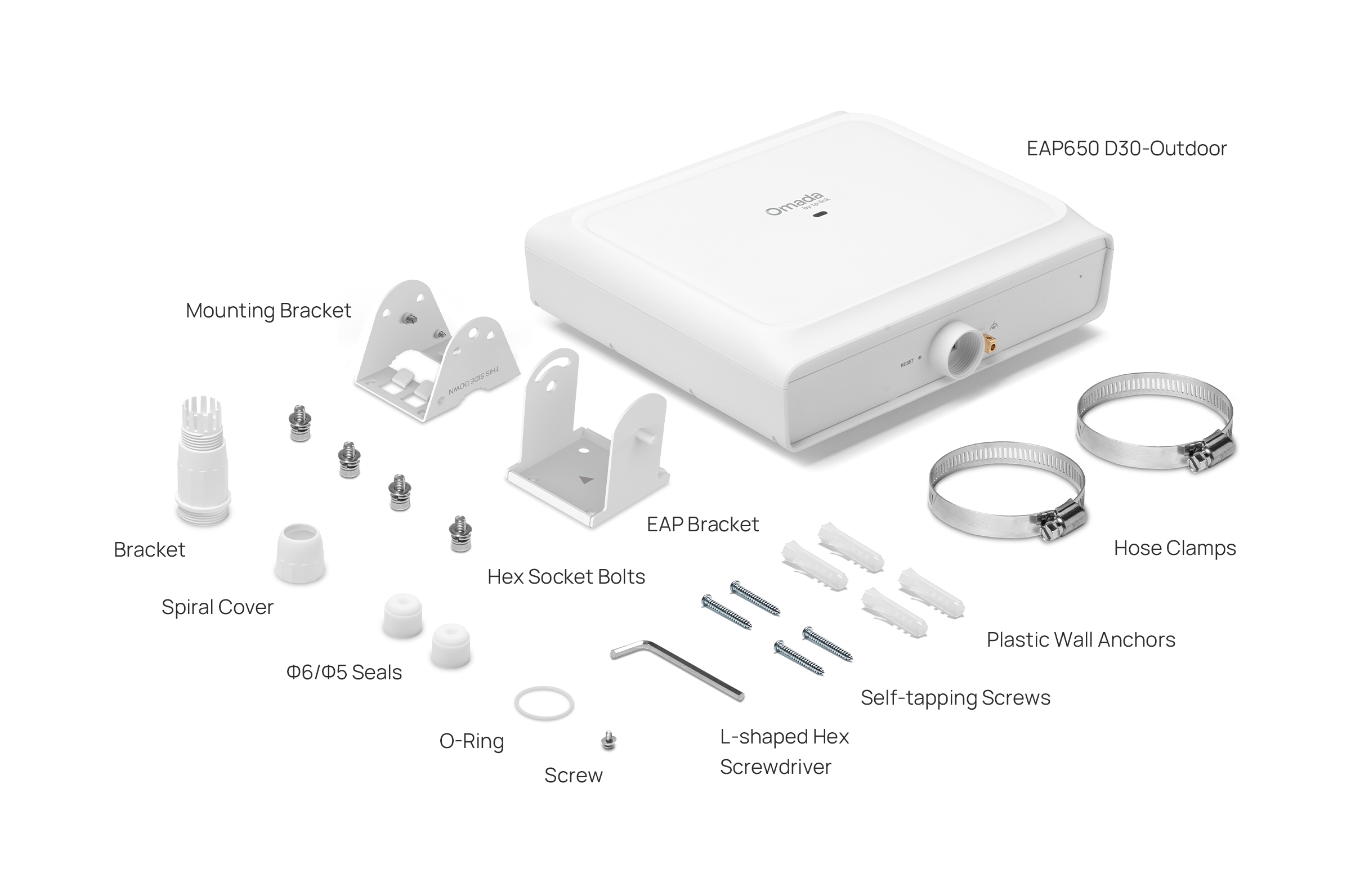 | Package Content | • Access Point EAP650 D30-Outdoor• Mounting Kits• Installation Guide• Waterproof Kit |