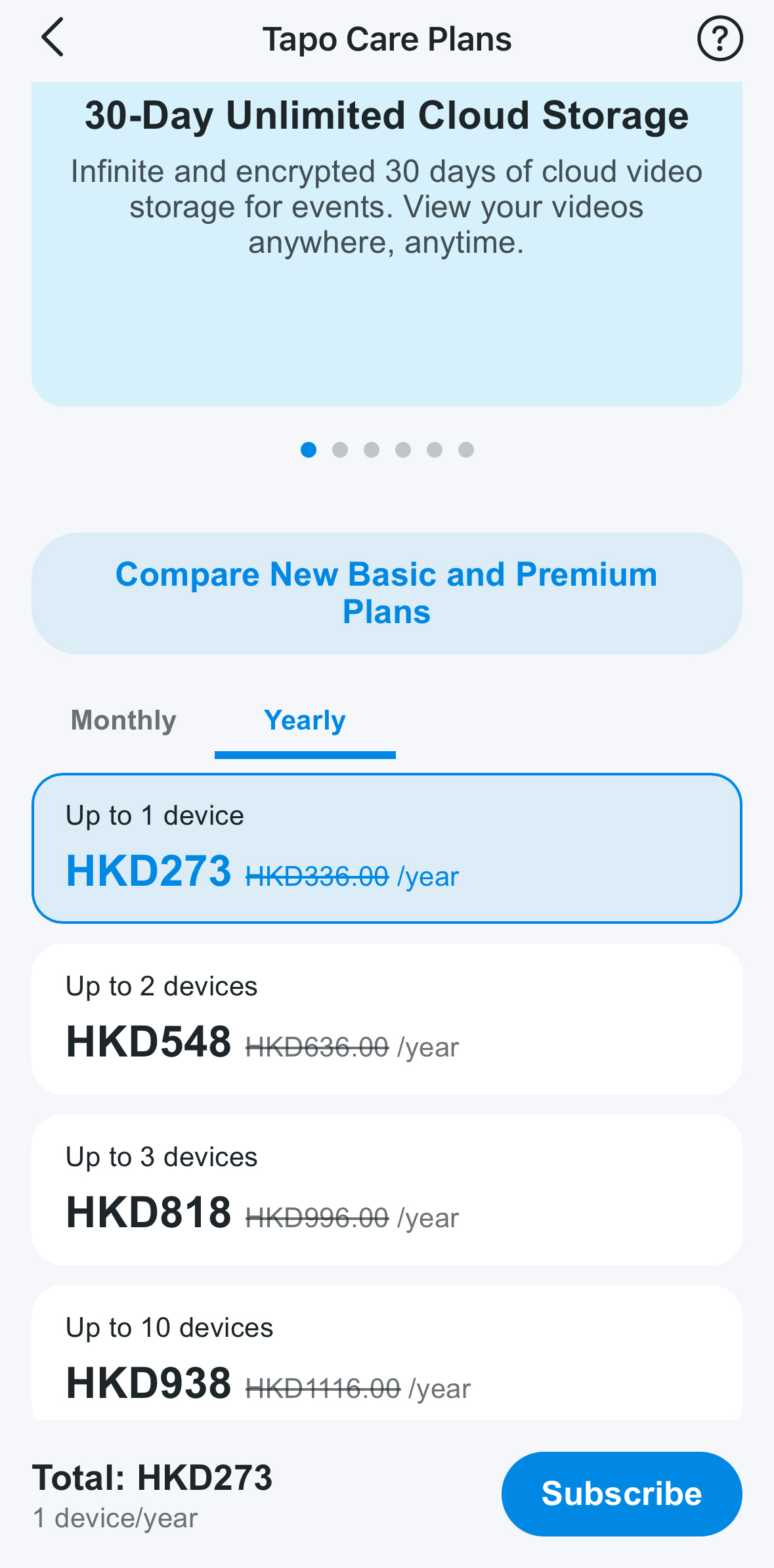- If you are on Tapo APP, please tap on “Subscribe” to continue the payment in the iOS App Store or the Android Google Play.