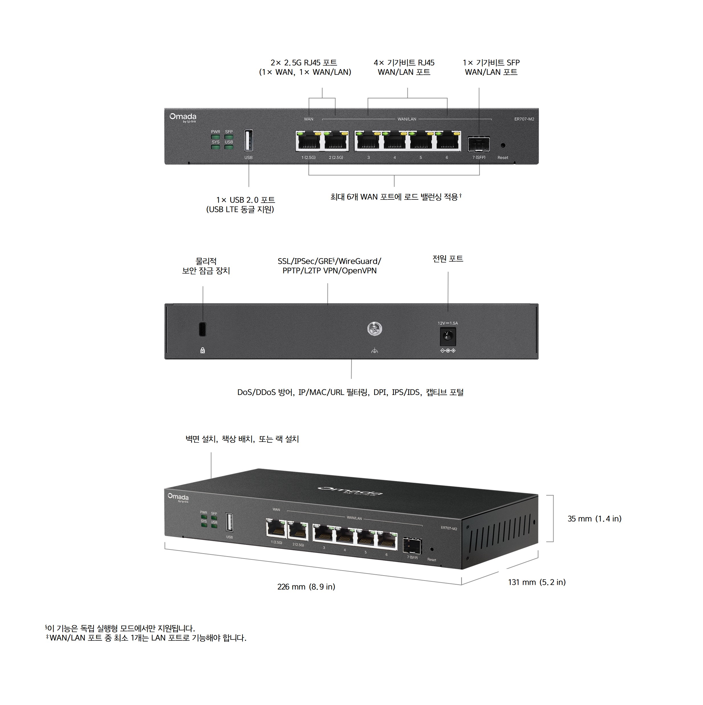 ‡WAN/LAN 포트 중 최소 1개는 LAN 포트로 기능해야 합니다.