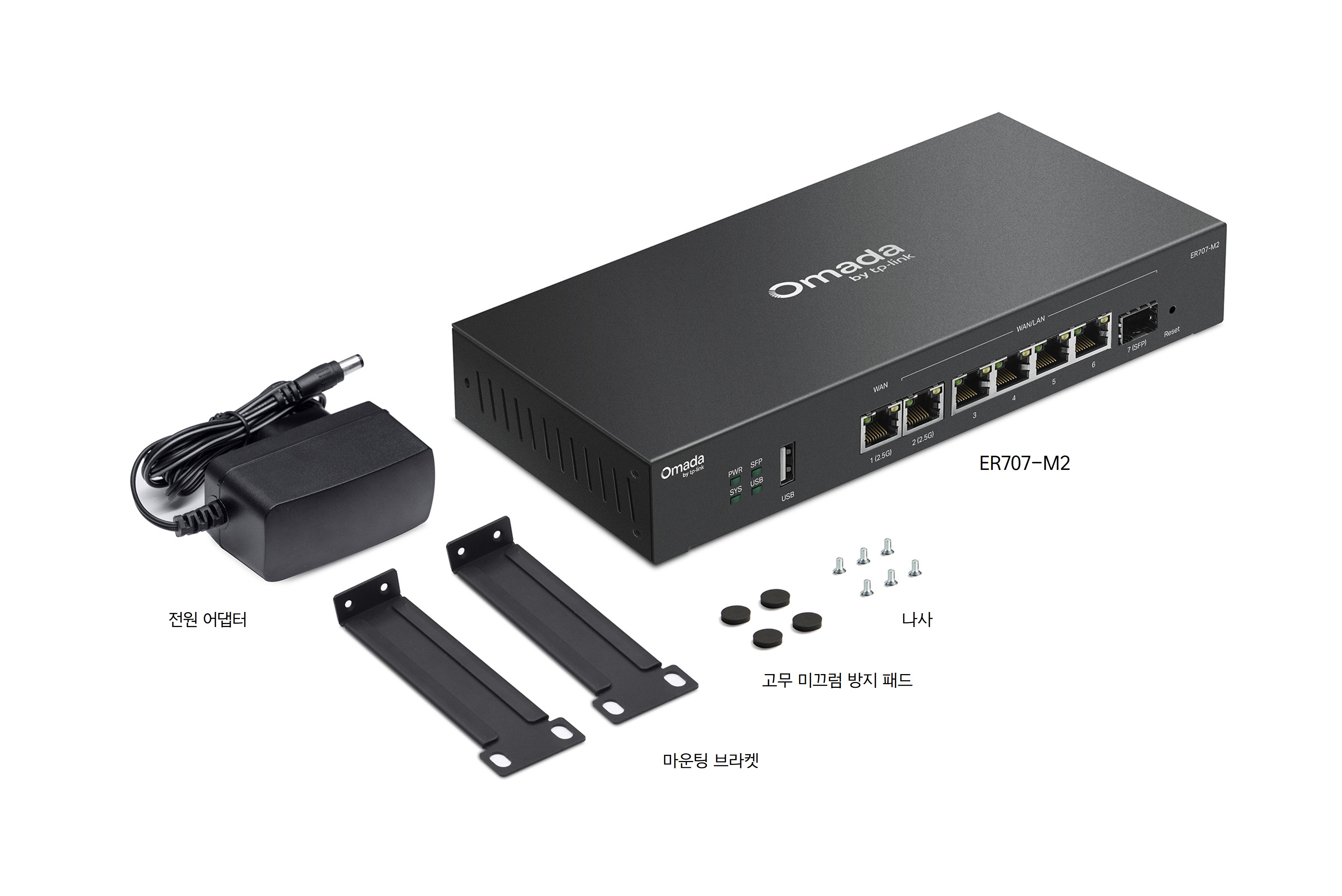 | 구성품 | • ER707-M2 • 전원 어댑터 • 랙마운트 키트 • 빠른 설치 가이드 |