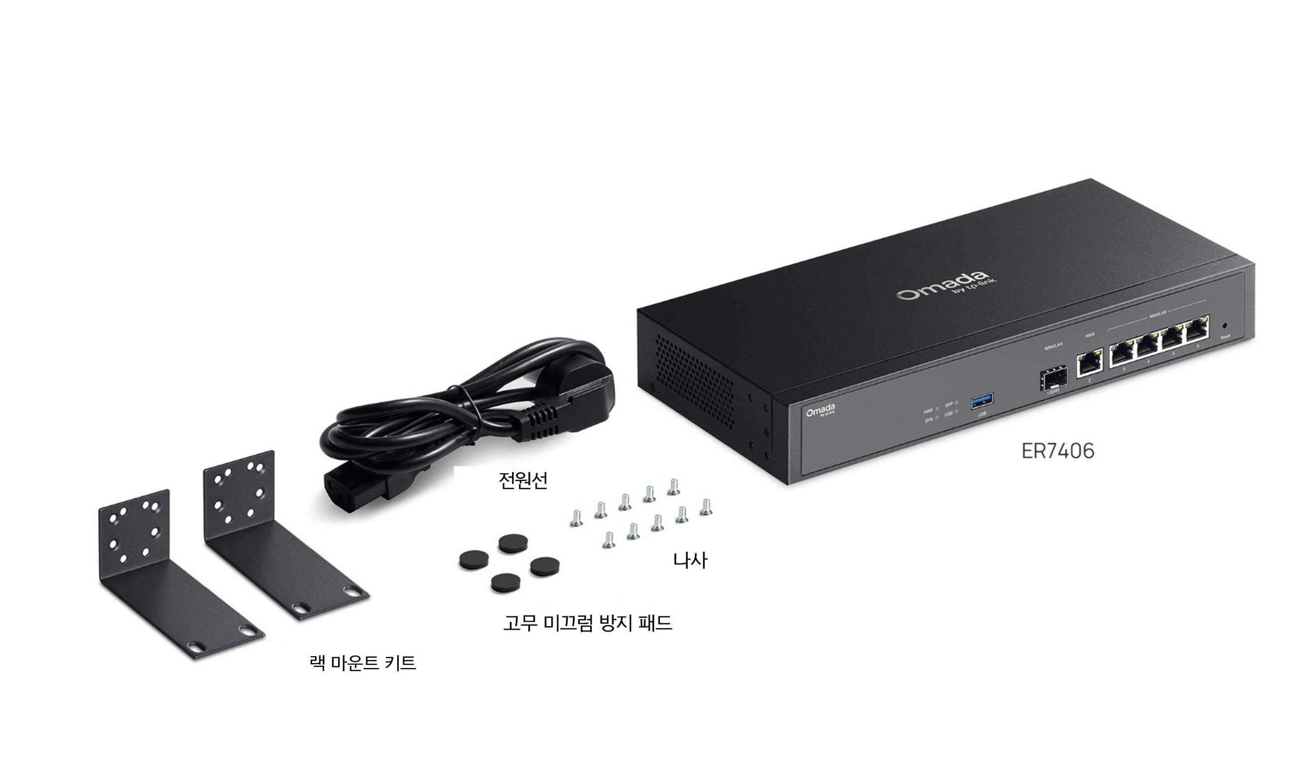 | 구성품 | • ER7406 • 전원 케이블 • 빠른 설치 가이드 • 랙마운트 키트 |