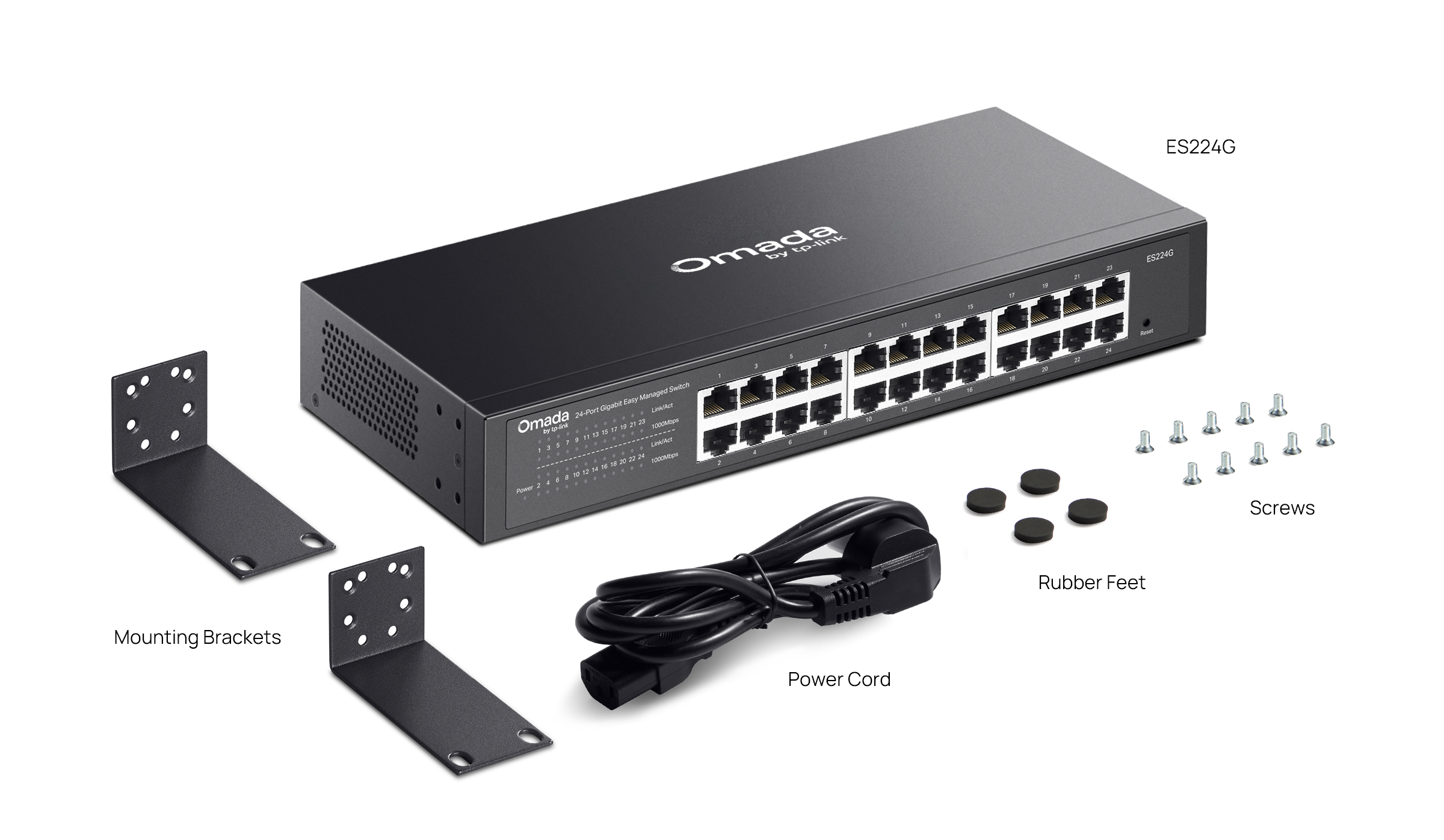 | 구성품 | • ES224G• Power Cord• Rubber Feet• Mounting Brackets• Screws• Installation Guide |