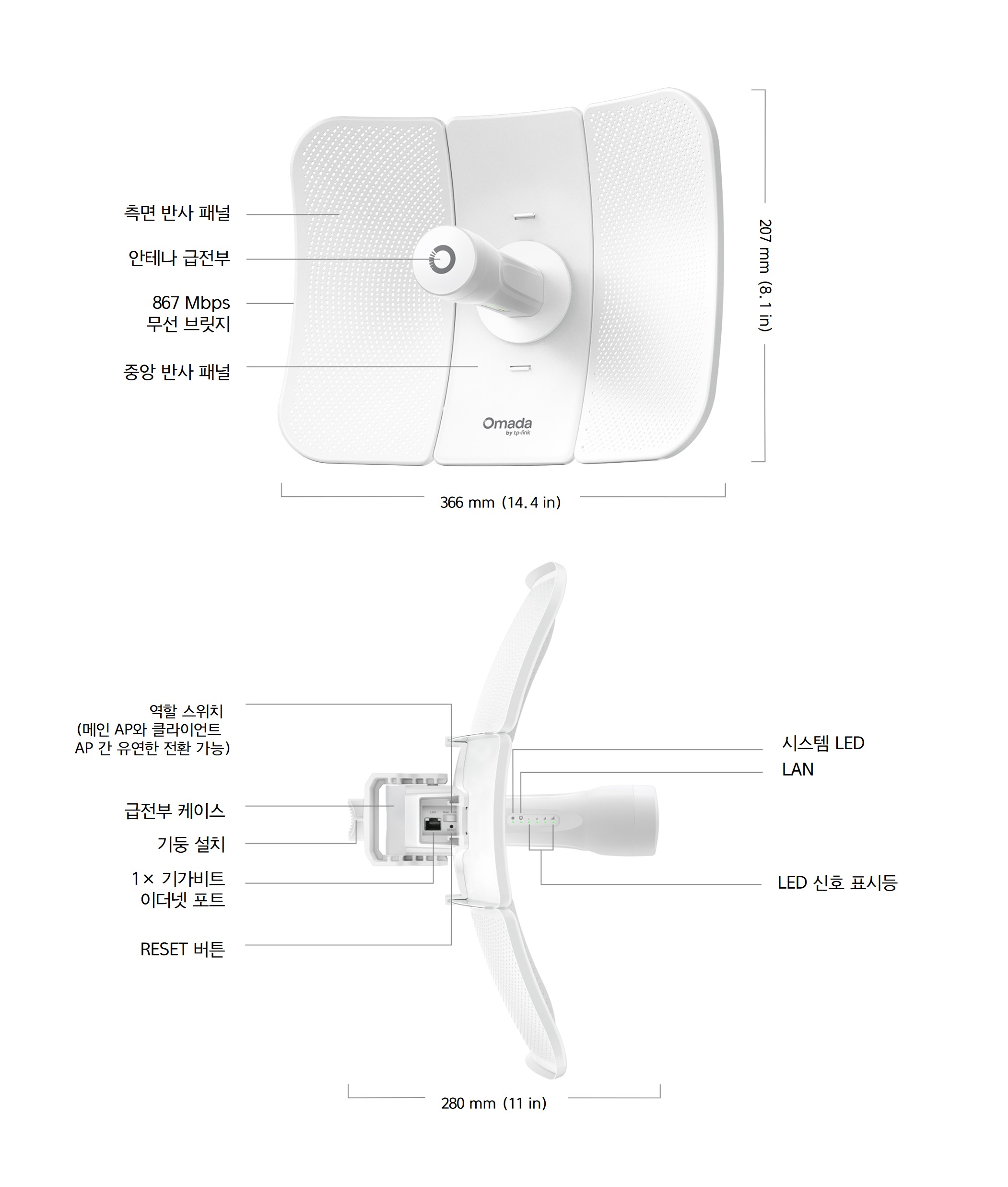 곧 출시Omada 5 GHz 867 Mbps 장거리 실내/실외용 무선 브릿지