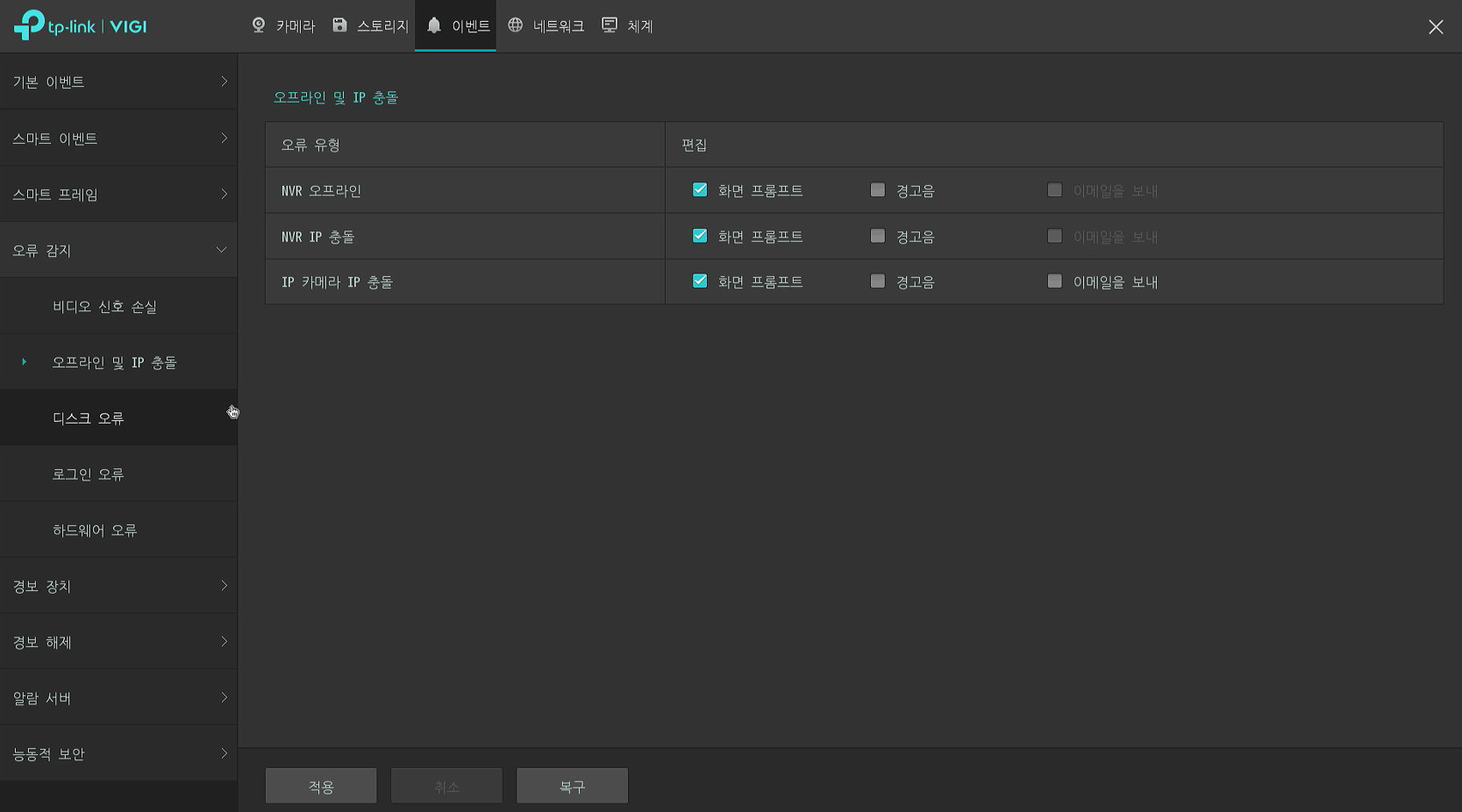 - VIGI NVR과 다른 클라이언트 간의 IP 주소 충돌