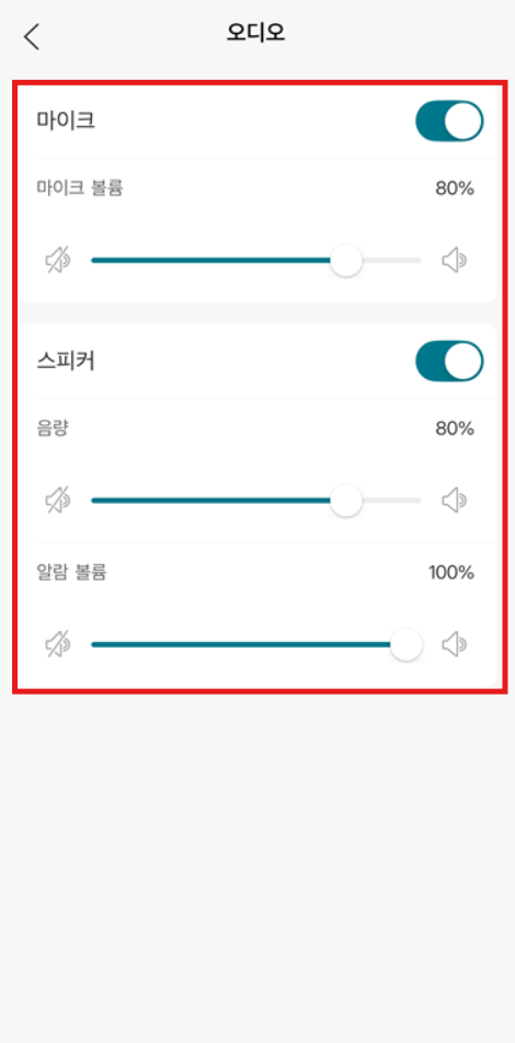 VIGI 카메라는 카메라의 비디오 스트림과 내장 마이크에서 수집한 소리를 모니터링할 수 있습니다. 아래 화면처럼 음향 기능을 켜거나 끌 수 있습니다. 다만 소리 볼륨을 높이거나 낮추려면 휴대폰의 볼륨 버튼을 눌러야 합니다.
