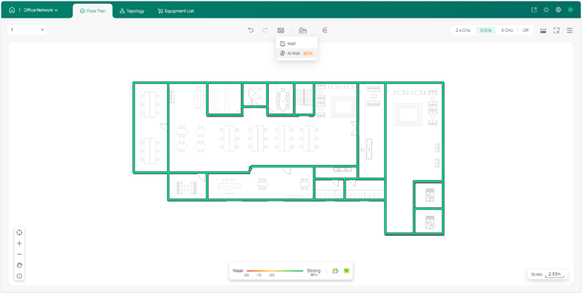 - Make sure the floor plan scale reflect the actual environment, as it impacts wall simulation, cable length, and wireless coverage.