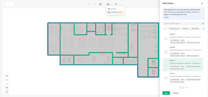 Step 1) Click AI Devices and select an AP model. Click Apply.