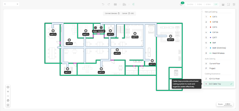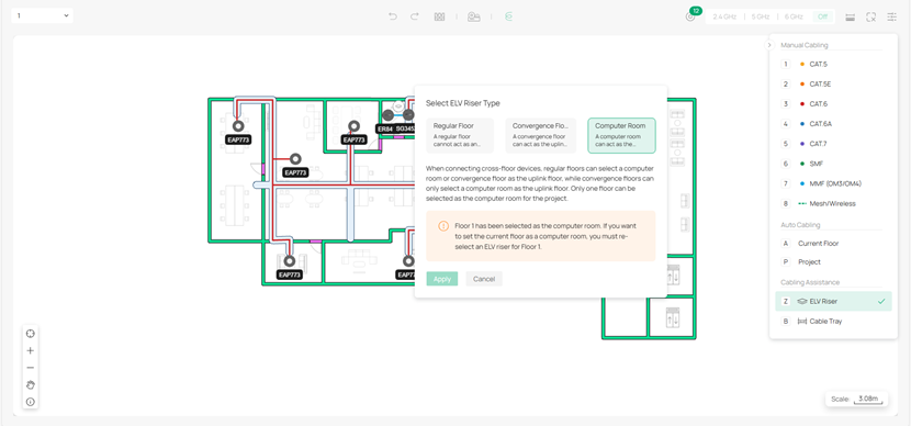 After properly placing the devices, deploy cables to connect these devices for the current floor.