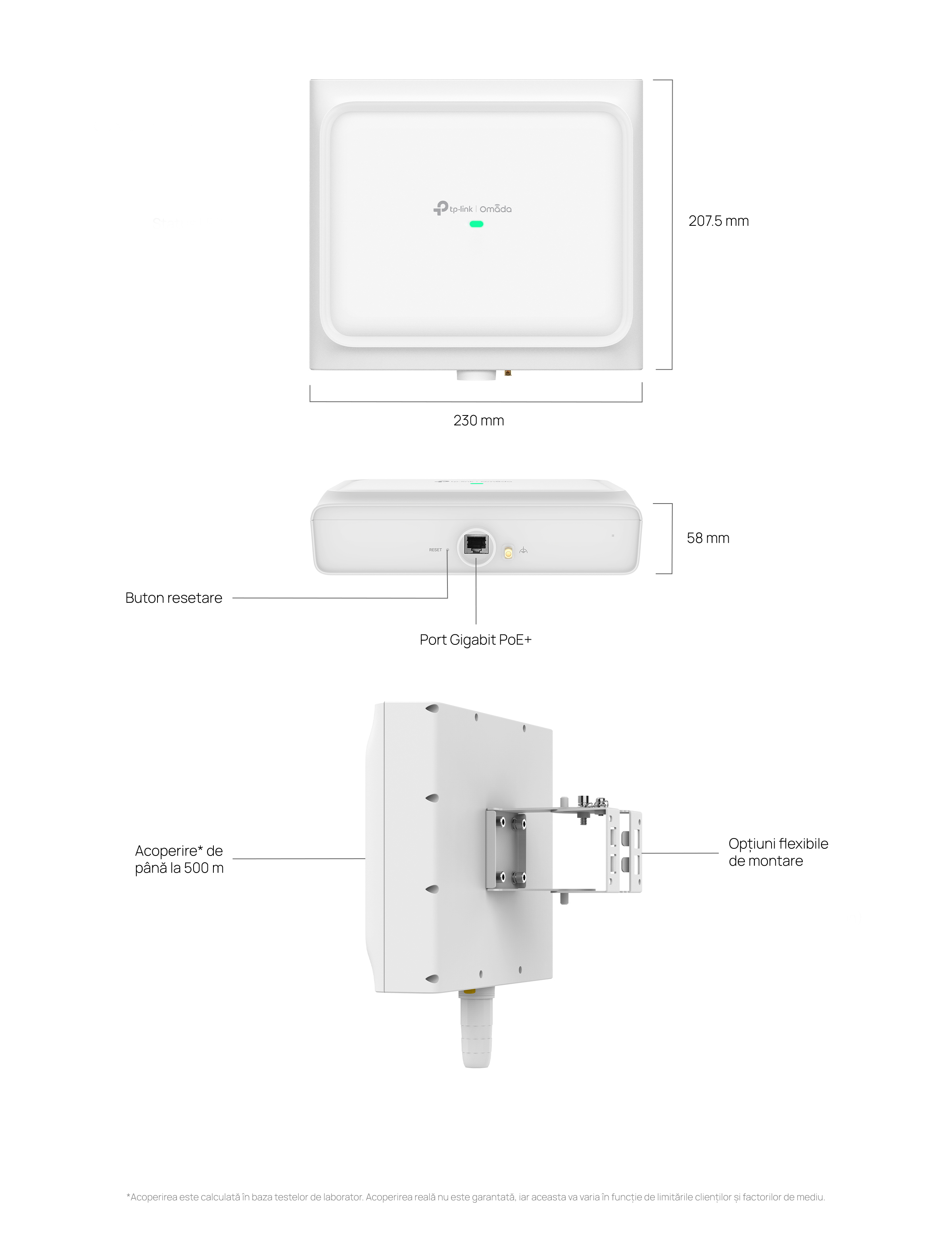 **Capacitatea reală depinde de mediul wireless și de traficul clienților și este, în general, mai mică decât numărul maxim de conexiuni suportate.