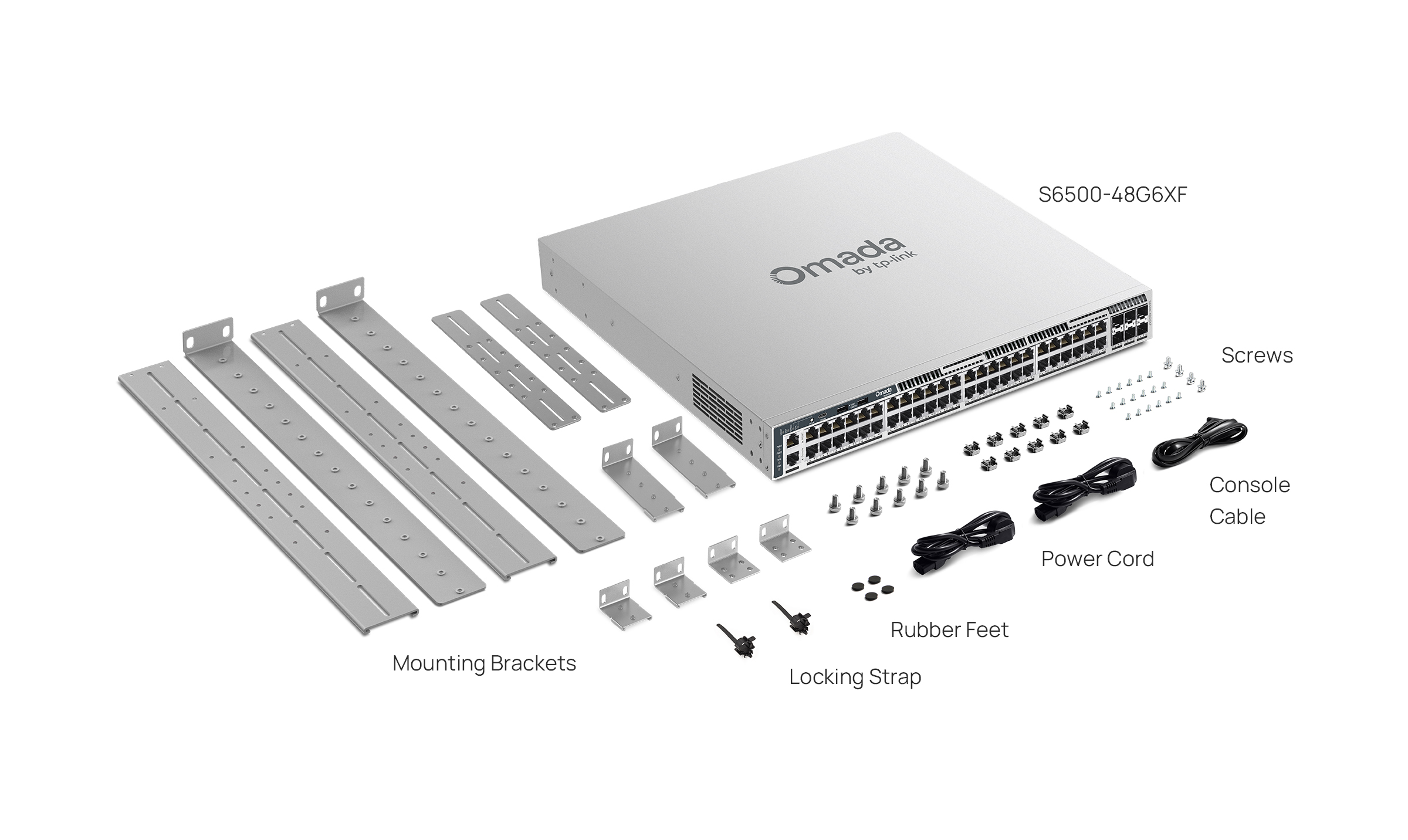 | Package Content | • S6500-48G6XF Switch• 2× Power Cords• RJ45 Console Cable• Quick Installation Guide• Rackmount Kit• Rubber Feet |