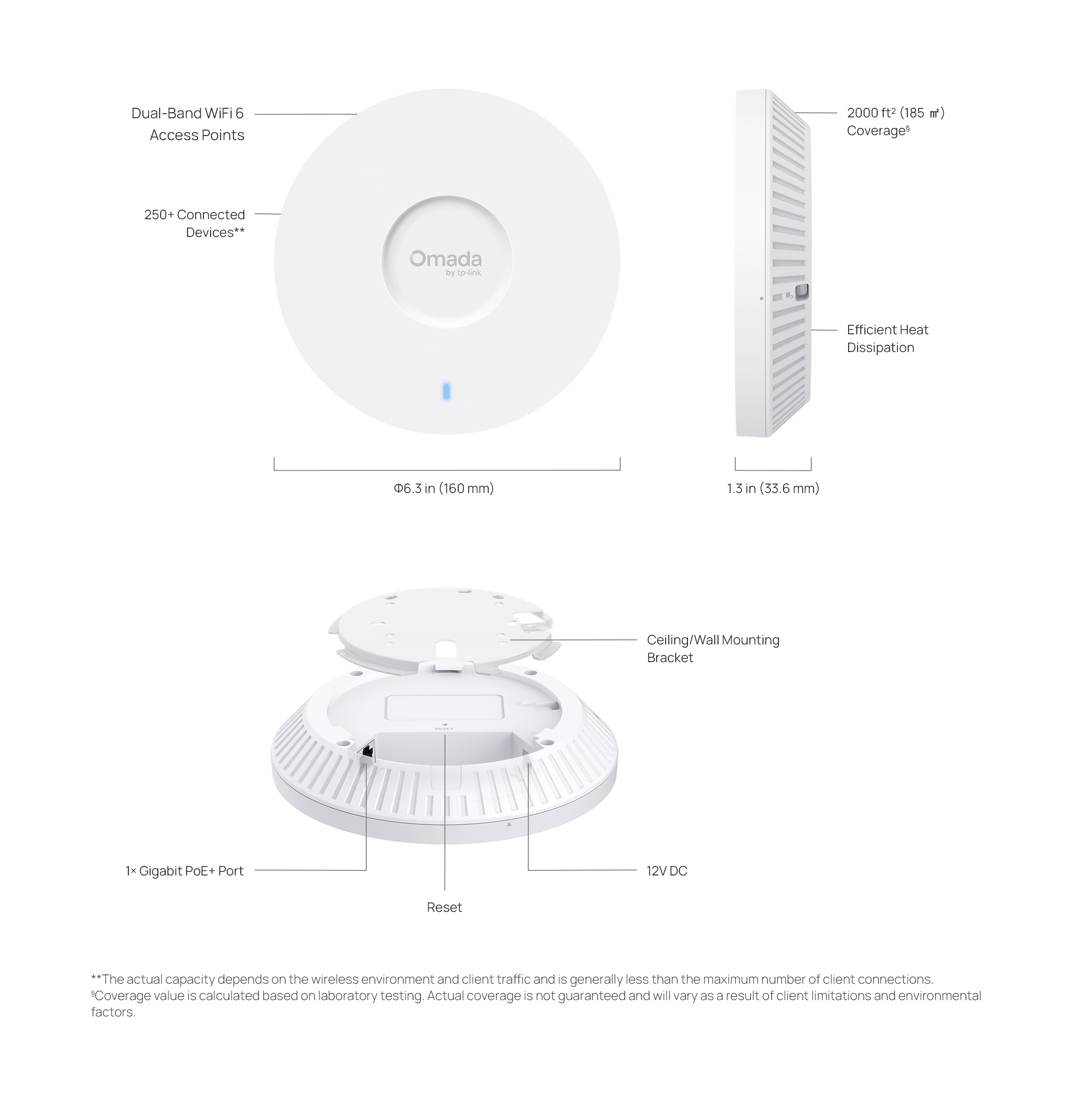 **The actual capacity depends on the wireless environment and client traffic and is generally less than the maximum number of client connections.