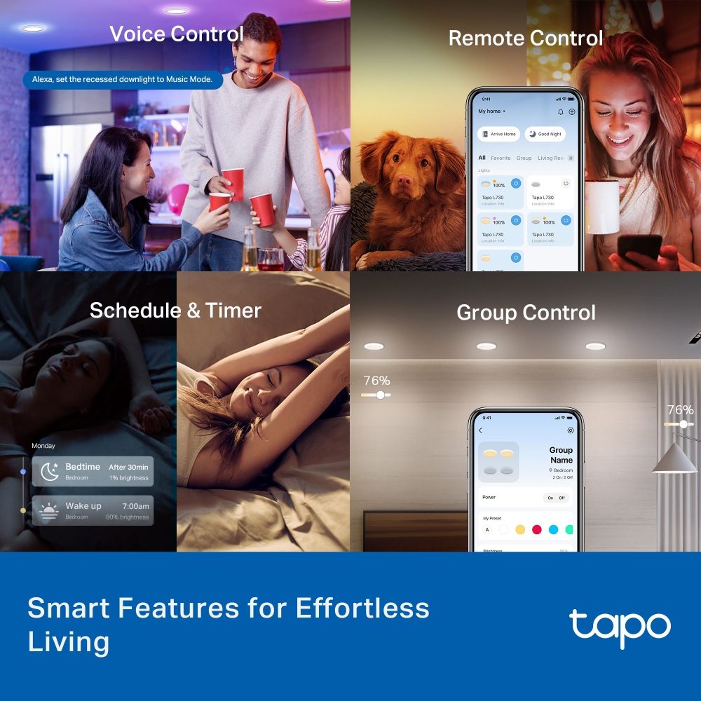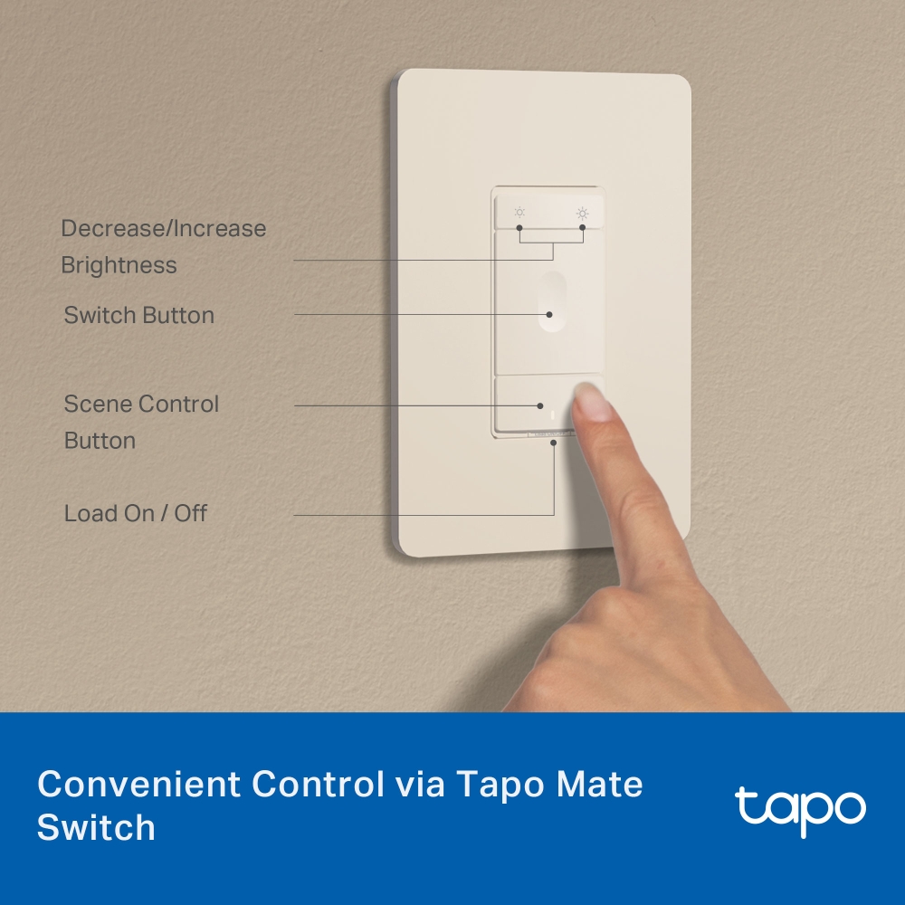 - Multiple Convenient Control Methods - Adjust lights with your smartphone, voice, or the Tapo Mate Switch, ensuring convenience for all ages.